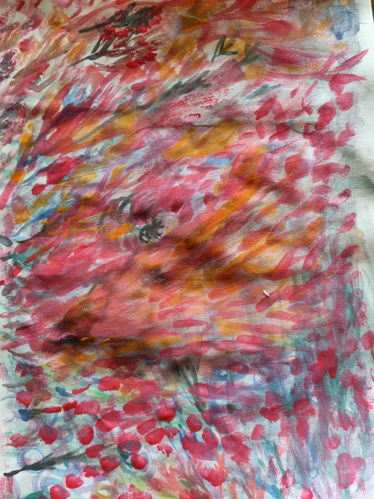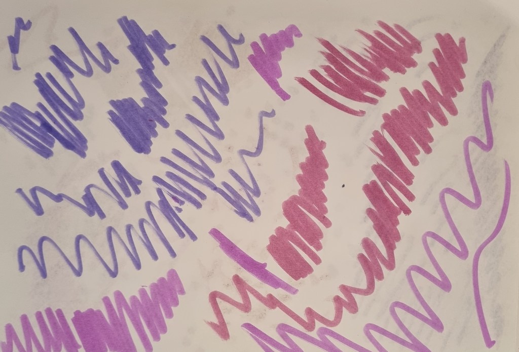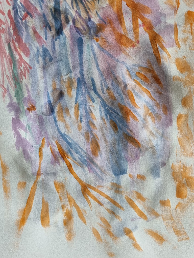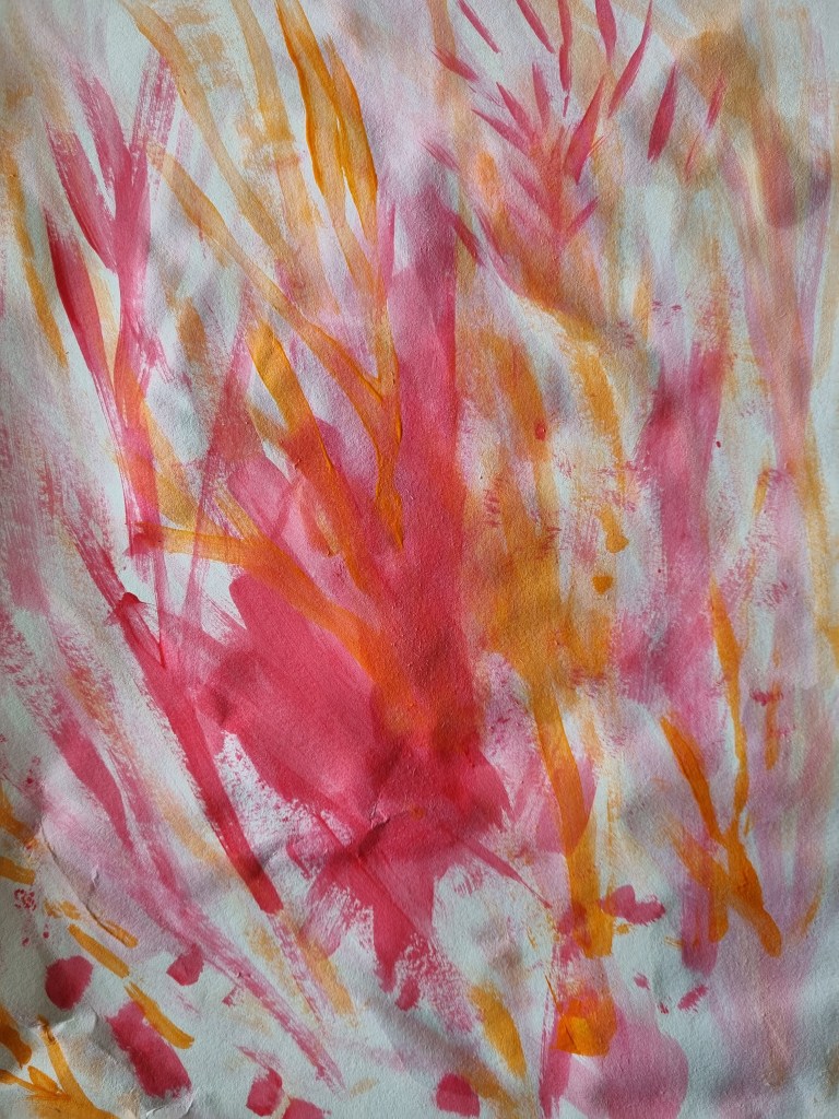 “M” did not feel discouraged by using acrylic paint for a change. However, I wanted to know what pattern or method “M” would choose, considering that drawing markers are thin and paint covers more surface of the paper. “M” realised that it would be tricky to paint on the reverse side because she would have to wait for the paint to dry. Therefore, “M” decided to paint only one side because of the waiting time. What is also interesting is that “M” changed the direction marks while using the paint.