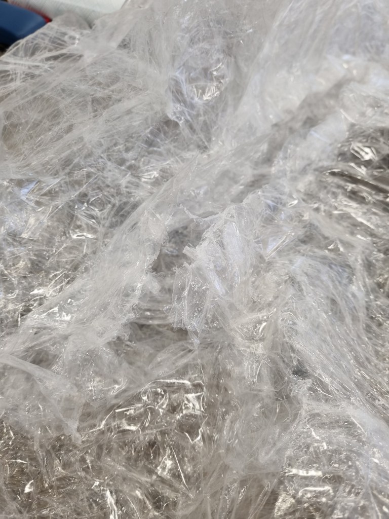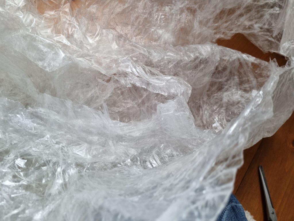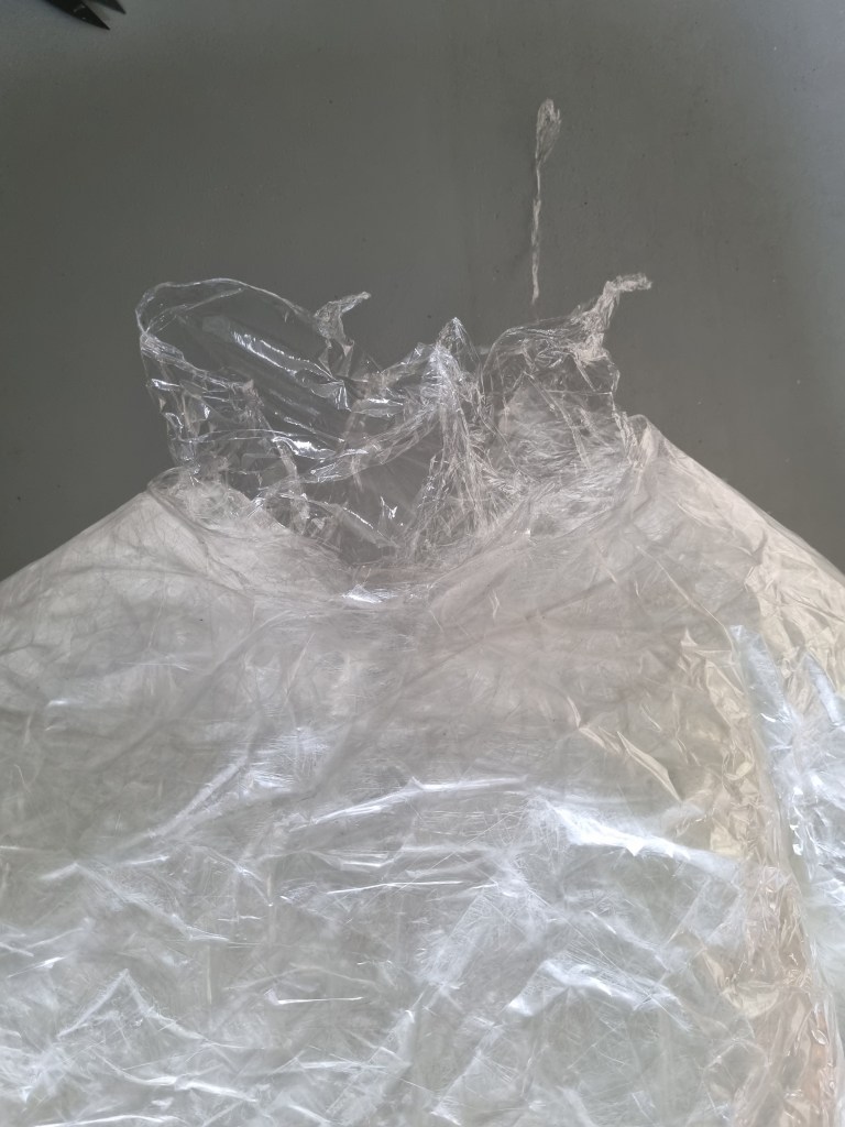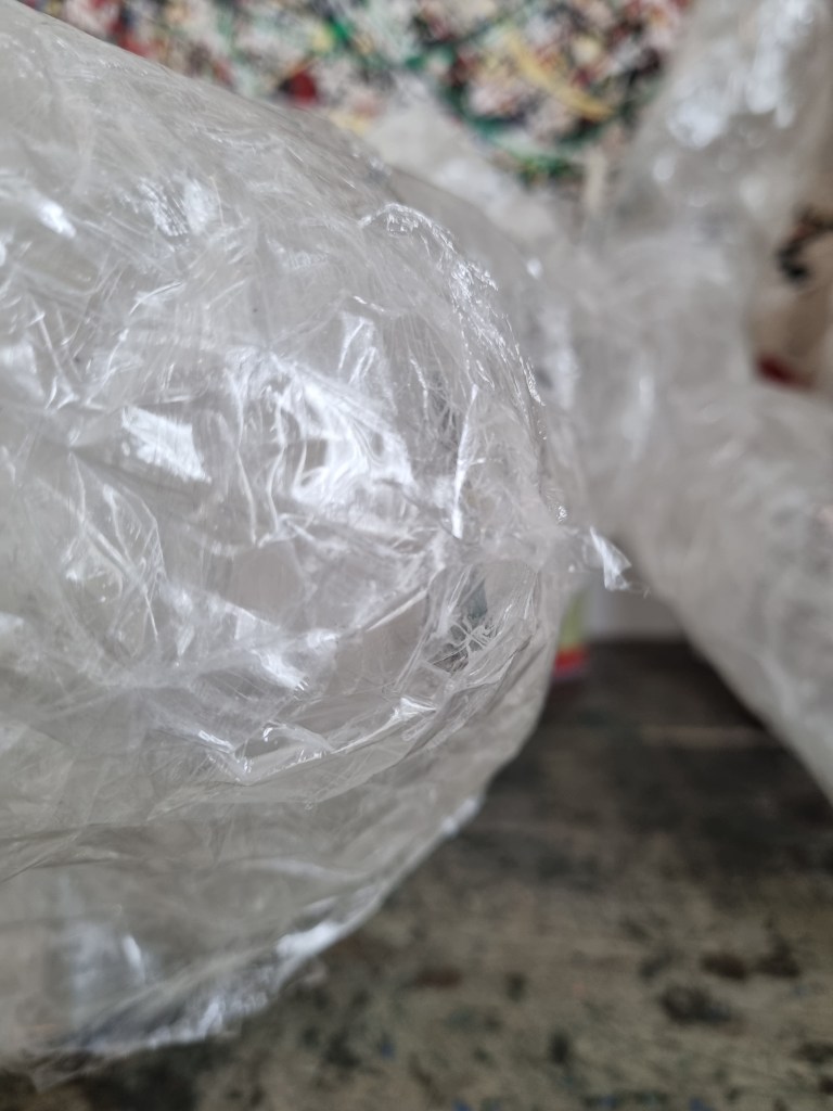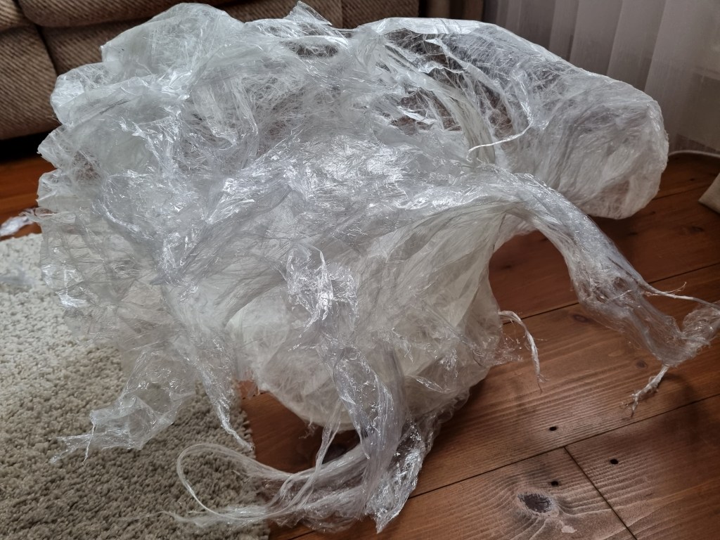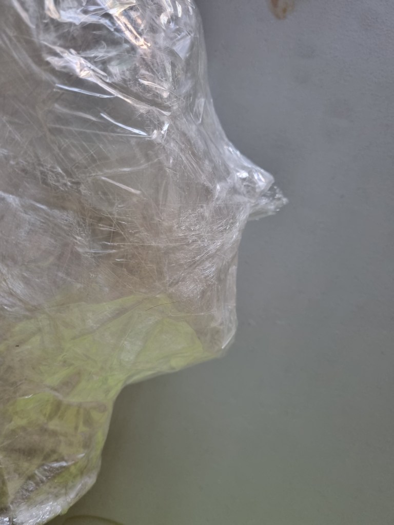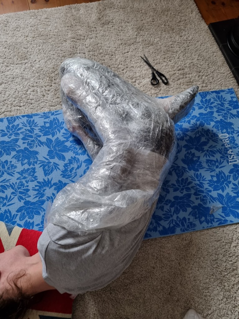 I removed the extra access of the clingfilm, and then I started to attach more sellotape to secure the shape. I used the sellotape that was donated to me specifically for this project which was helpful because I used a lot of sellotape for this sculpture.