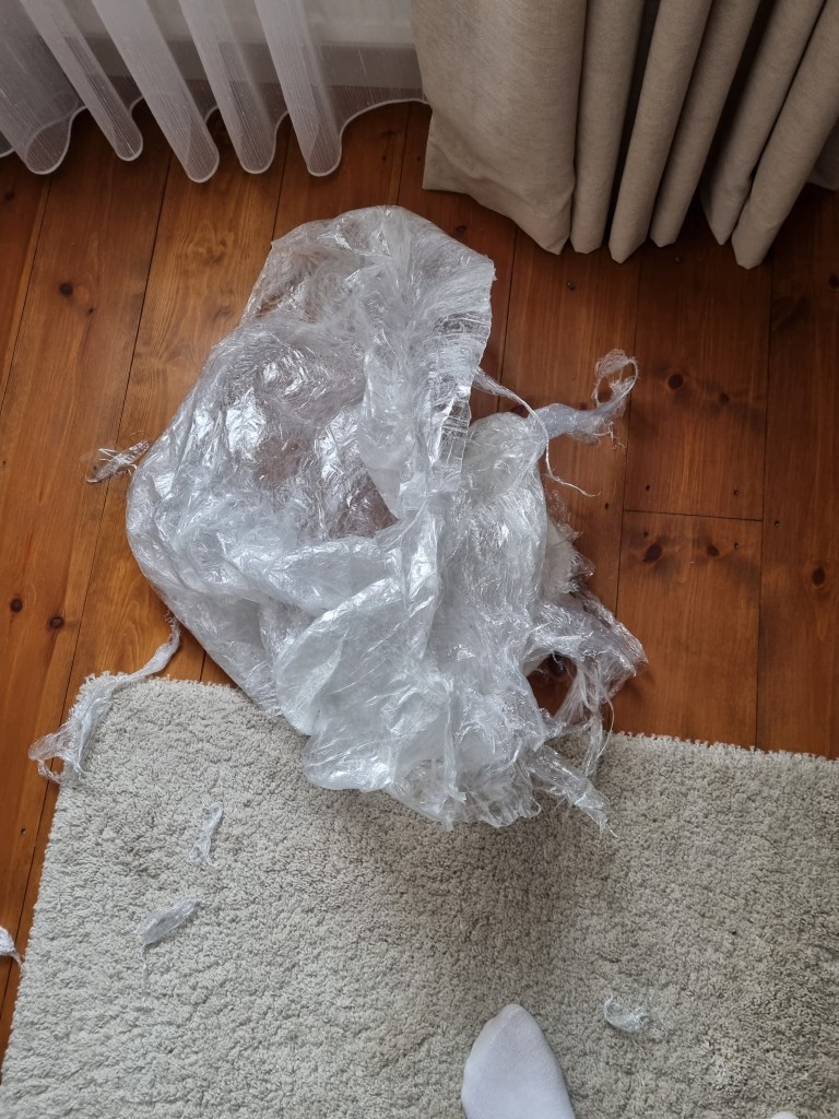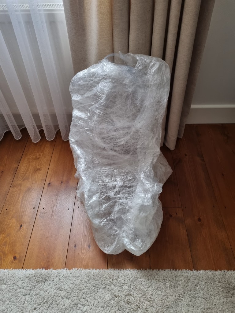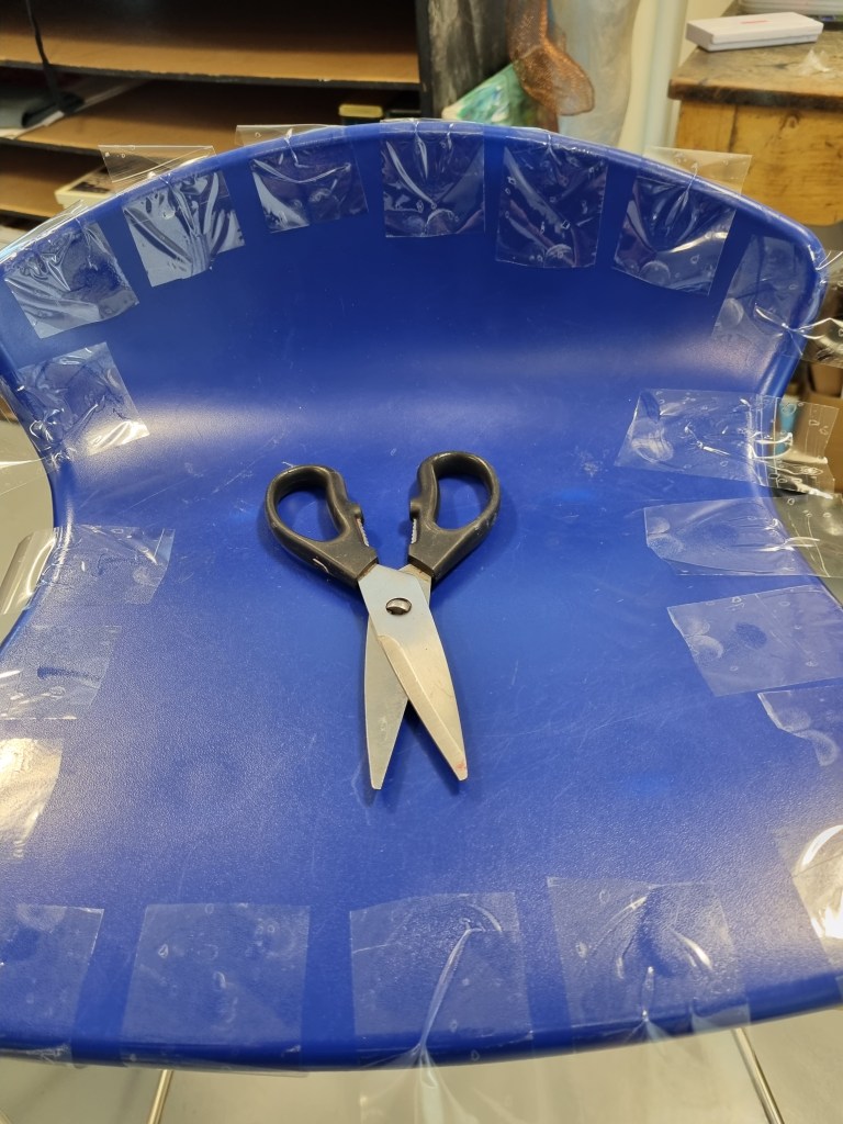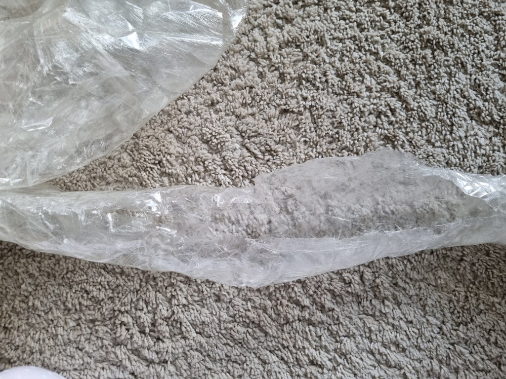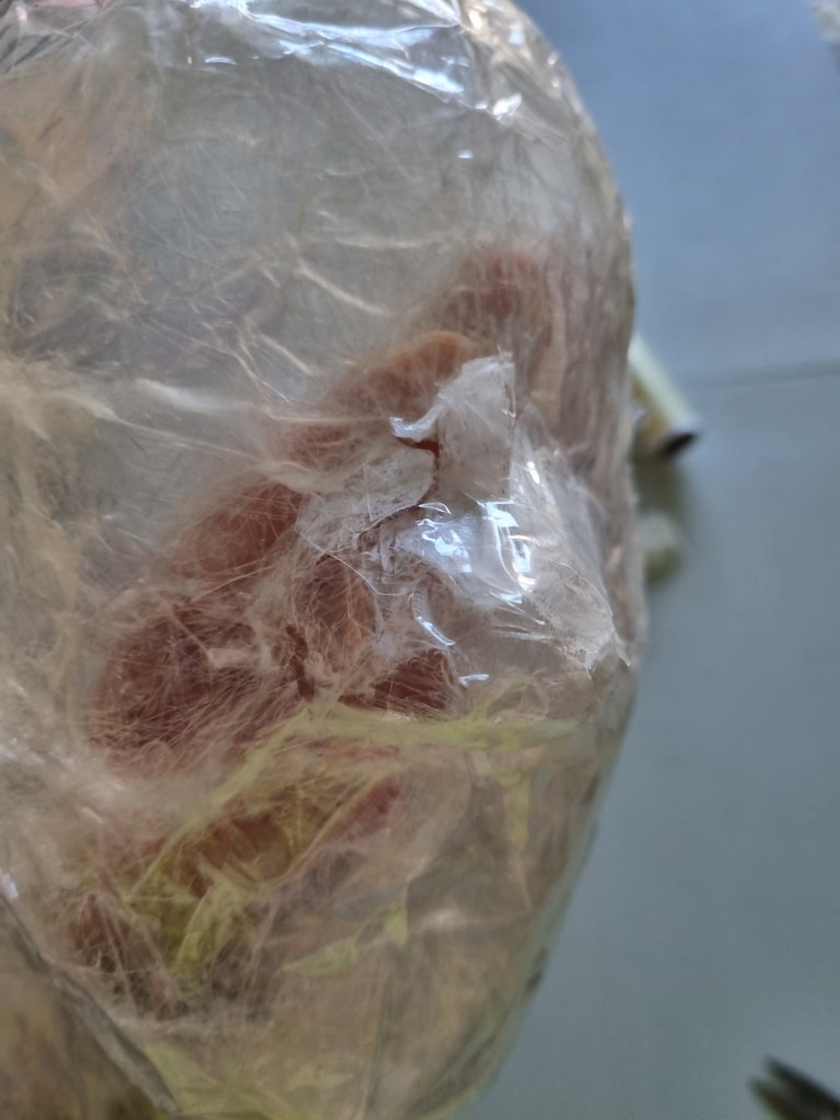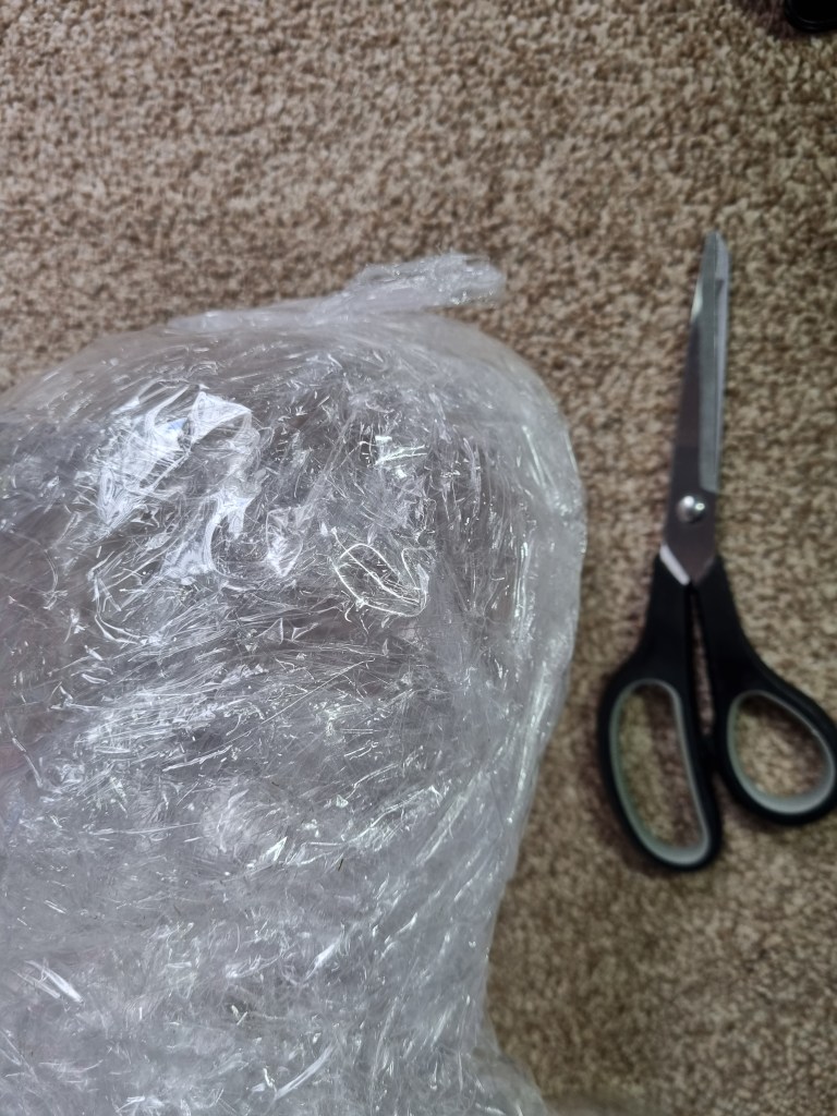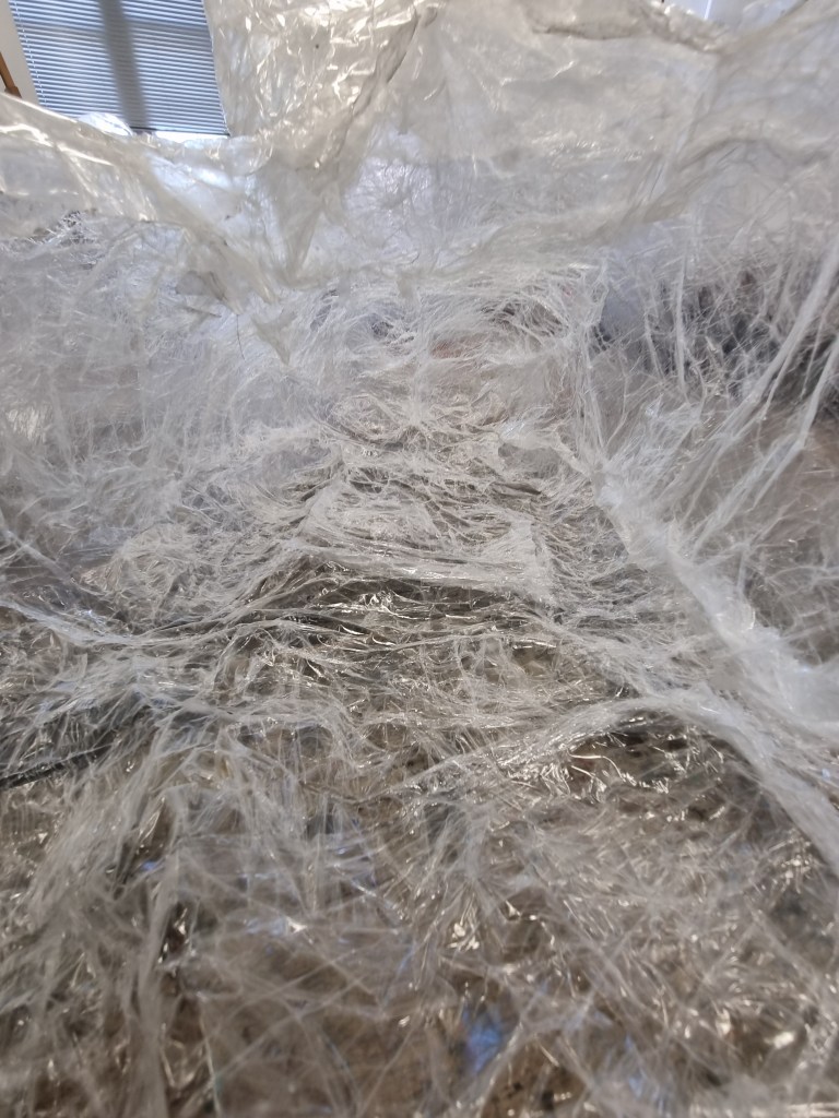 I removed the extra access of the clingfilm, and then I started to attach more sellotape to secure the shape. I used the sellotape that was donated to me specifically for this project which was helpful because I used a lot of sellotape for this sculpture.
