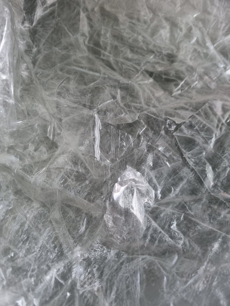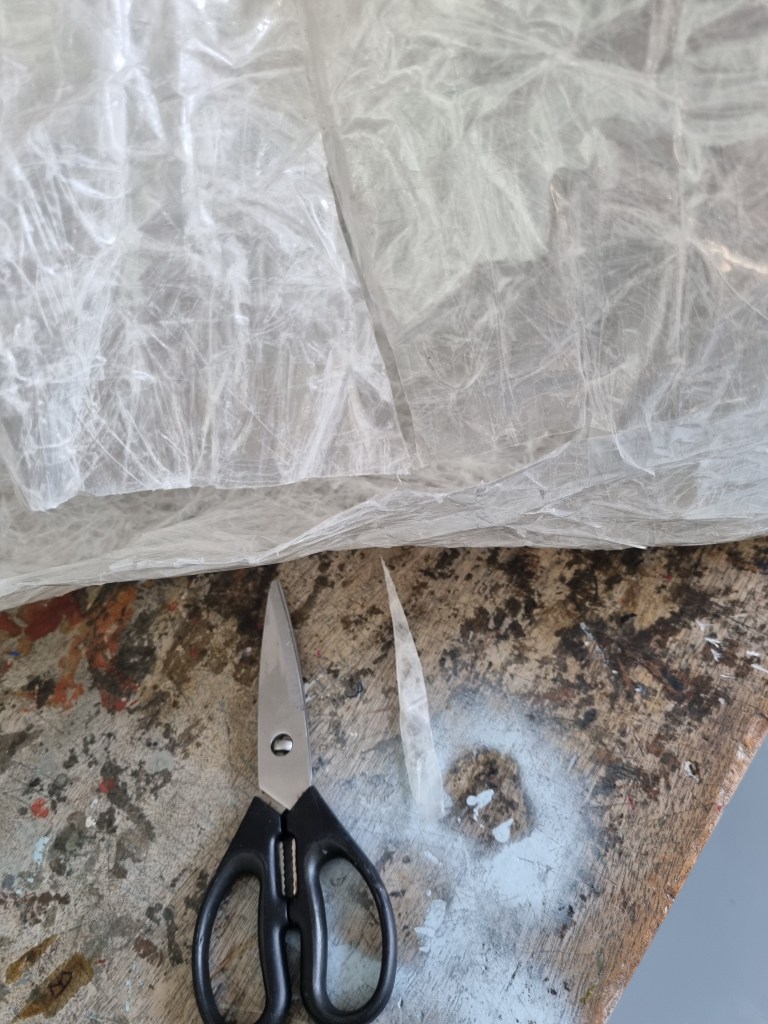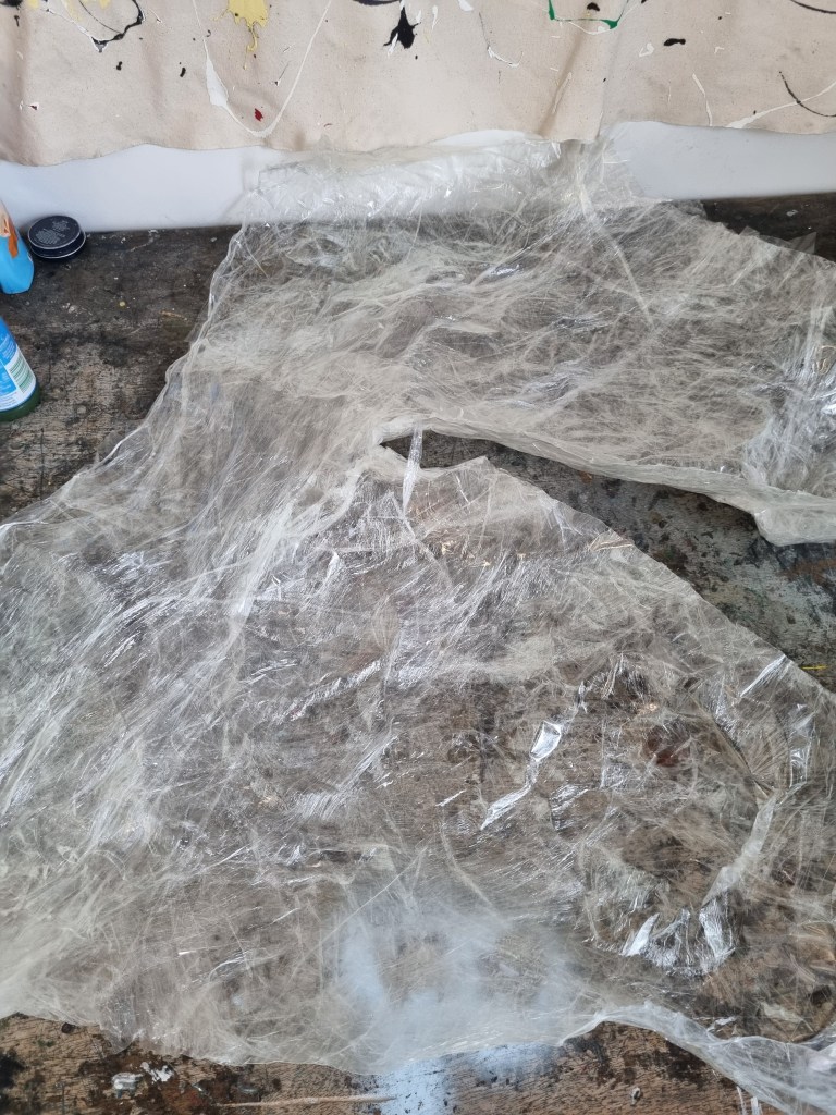 The glue got into the seams of the sellotapes, and it looked cloudy. I was worried then that the clarity of the transparency could be compromised. So I decided not to continue with the Mod Podge for the rest of the sculpture.