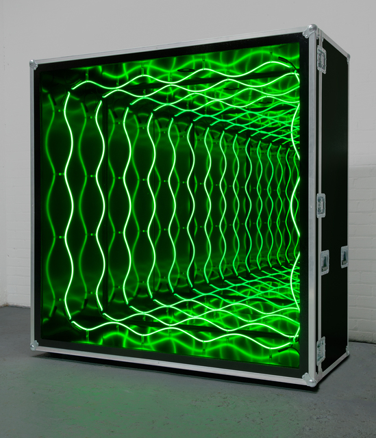 Navarro works extensively with light and infinity mirrors, in which viewers lose themselves in infinite space as neon phrases or structures loom out and suggest what lies beyond. These abyss-like works have been linked to Navarro’s fear of being abducted as a child. In addition, his works’ recurrent use of electricity alludes to the torture and human rights violations inflicted upon the Chilean population under Pinochet’s reign. Similar themes are applied in a global context visiting ideas such as capital punishment, migration and propaganda as key points. Navarro’s works activate his viewer’s sensory and psychological experiences. Best known for these socio-politically charged sculptures of neon, fluorescent, and incandescent light.