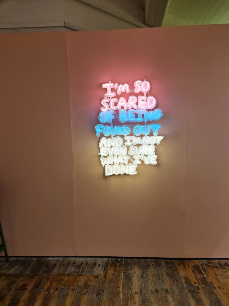 I thoroughly enjoyed the exhibition. The contemporary approach is what I want to include in my work. I like the combination of the lights and the pictures, and the overall feeling of the display flowed. However, I am also drawn to the last portrait of the artist himself in the room. It feels warm and reveals the artist’s (perhaps) personal space, style, and colours that match the exhibition’s colours, making him more approachable and human.