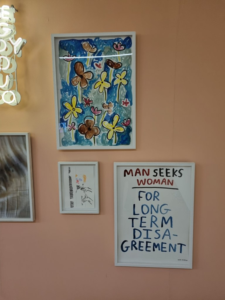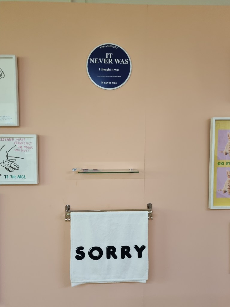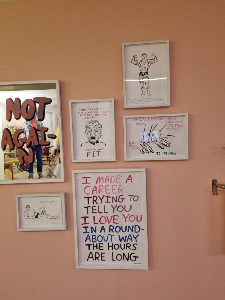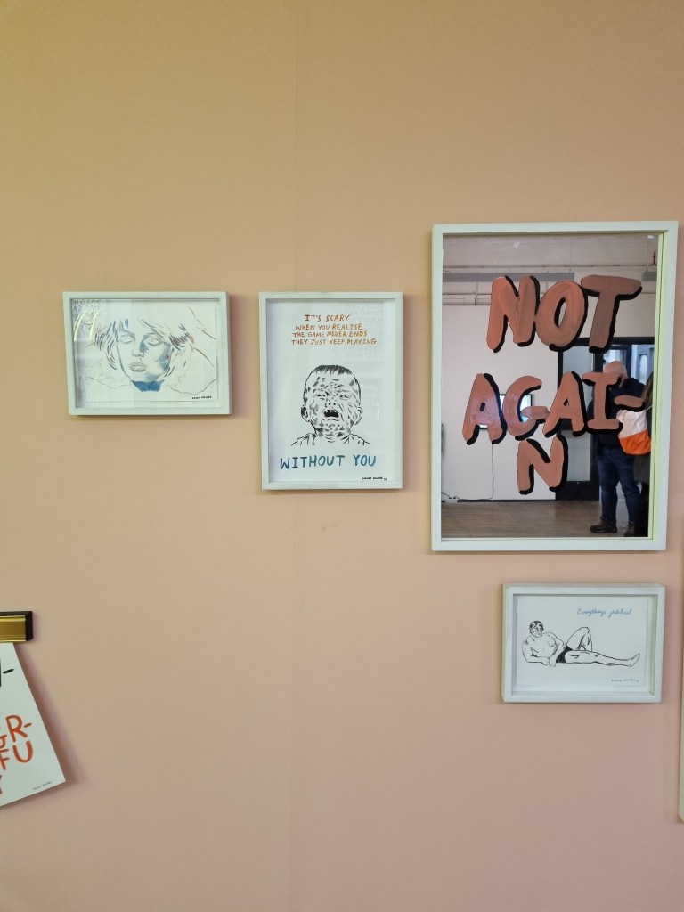 The pink walls softened the impact of some bold comments in the artwork and could lead the audience to swap positions with the artist’s perspectives.