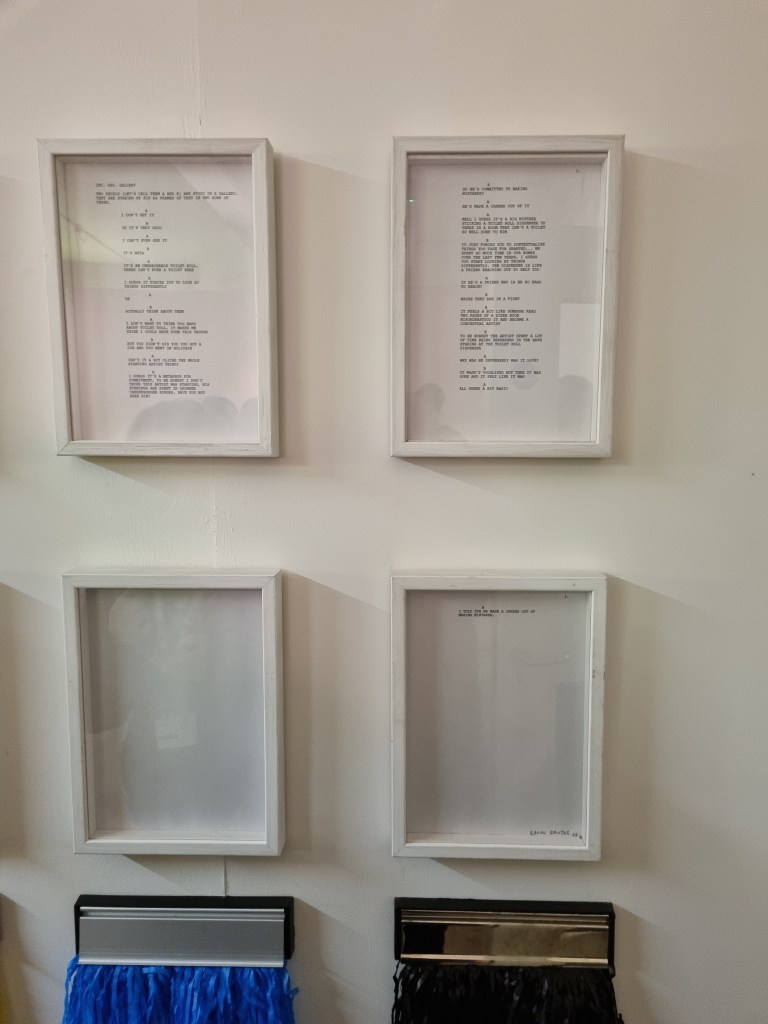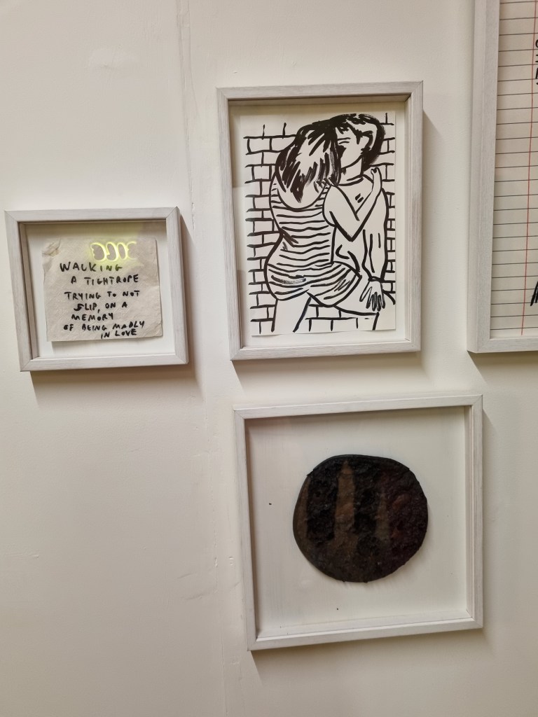 The entrance part of the venue was painted white, which gave the small space more volume. The artwork was poems that had white frames. Therefore, the overall view could have been more varied. However, the black writing attracted the attention and curiosity about the concept and the frame with the title of the show was in colour. The curator placed the picture with the coloured show’s title at the entrance too, which broke the black-and-white feeling.