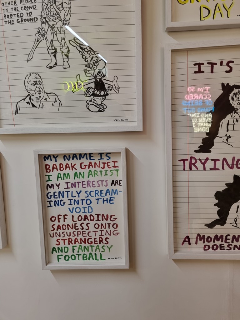 His “Everything is really bad…” exhibition was shown at Atom in March 2019, and “Babak Ganjei’s Vibe Dump” in September. I visited the “Home is Where Your Heart is Smashed To Pieces” exhibition in February 2023 in Blackburn Prism Contemporary.