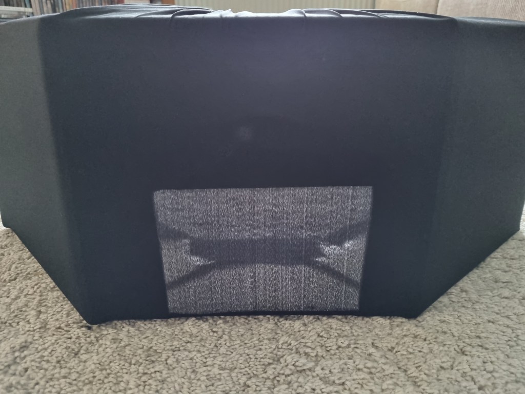 The audio was good, and the curtain separated the outside noise from the breath sound to some extent. The curtain also confused some people as there was no mark of the entrance, and viewers struggled to find the way inside. I should mark the access to the darkroom and indicate it clearly to the viewers. The remote control was visible to the invigilators. However, the batteries ran out of power quickly because the lights were constantly on, and I had to change the batteries three times over the week and two days of the exhibition, which was costly and was not working well. I must have an electric connection for the lights of the next installation of this piece. I believe the installation would be perceived better if placed independently and in a bigger venue. However, the overall impression was outstanding, the exhibition was well presented and executed, and most visitors enjoyed the experience.